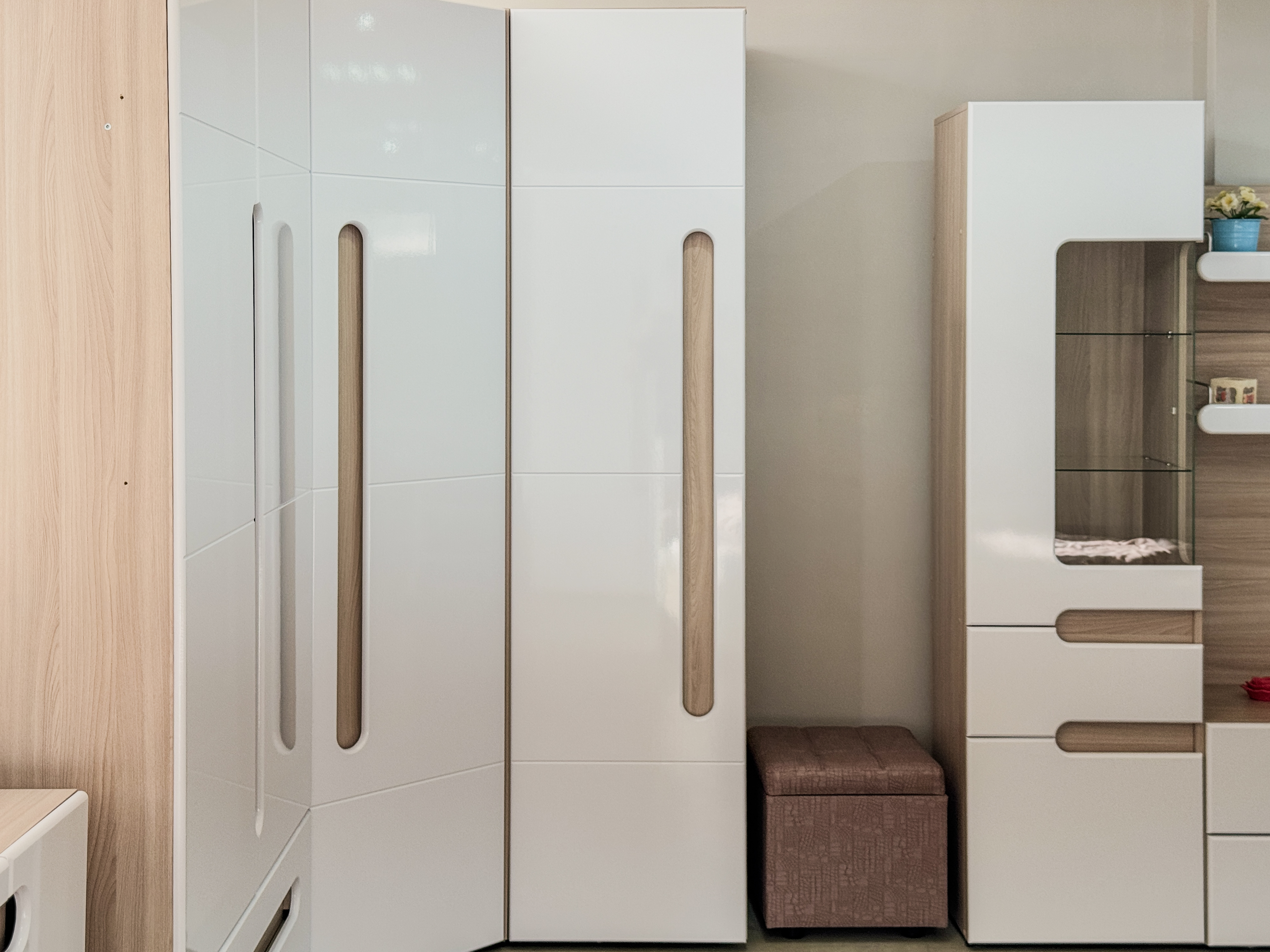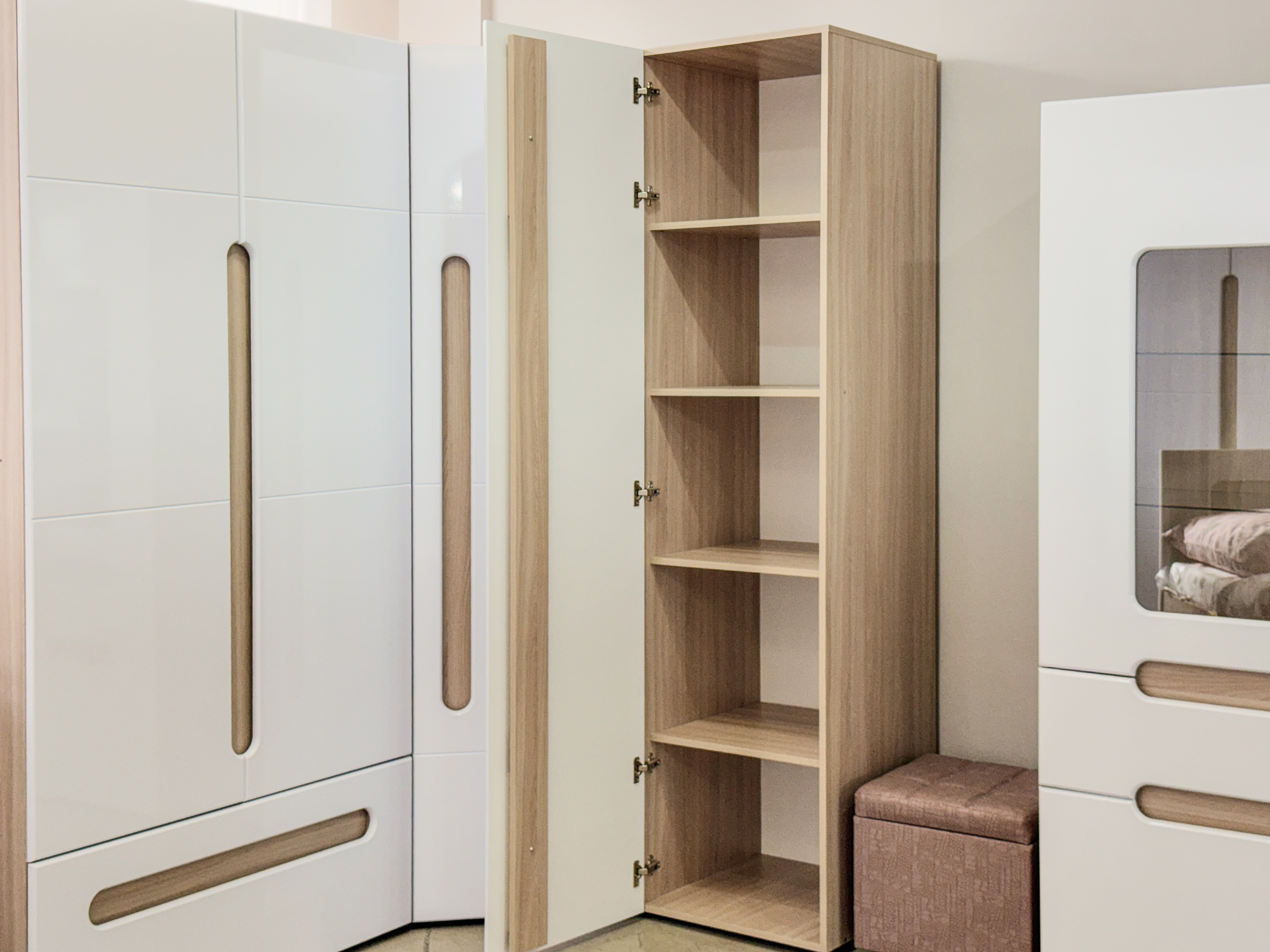 Отличается маленьким габаритом, глубина шкафов всего 560 мм - значительное преимущество при размещении на маленькой площади. Компактно разместится в гостиной, прихожей, спальне и детской комнате. Лаконичный дизайн подойдёт для любого интерьера. Универсальный набор модулей органично разместит одежду, бельё, игрушки, инвентарь.