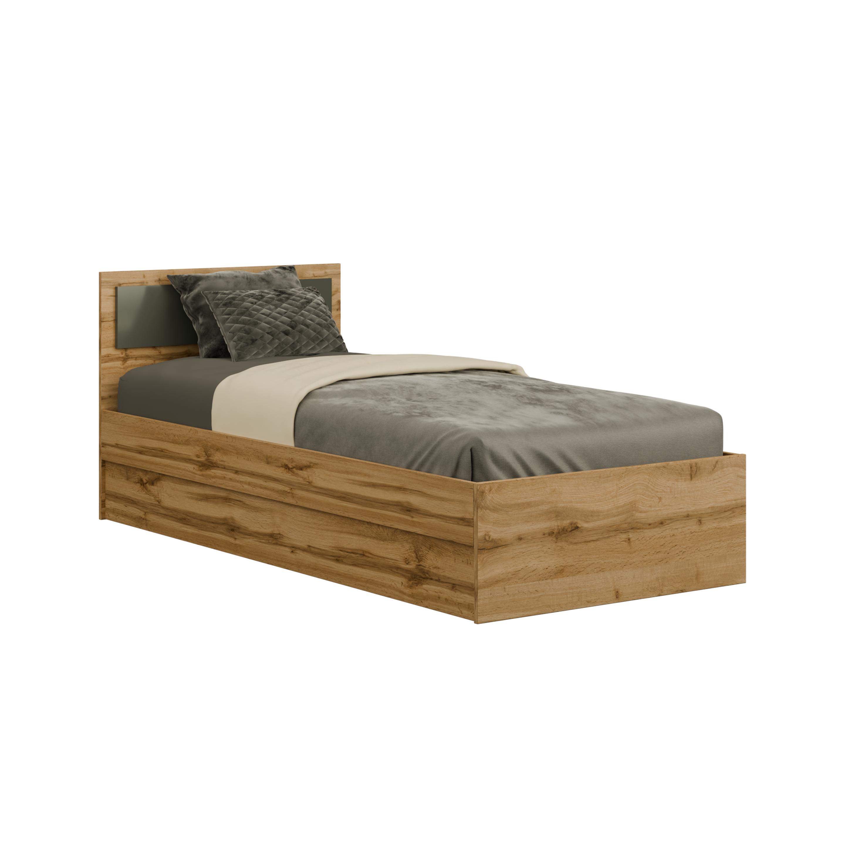 Кровать «Дуэт Люкс» в цвете дуб вотан/графит недорого в интернет магазине fabrika-eko.ru