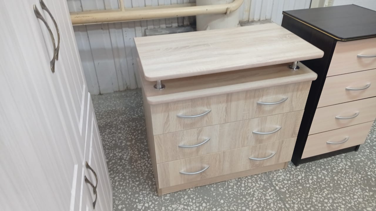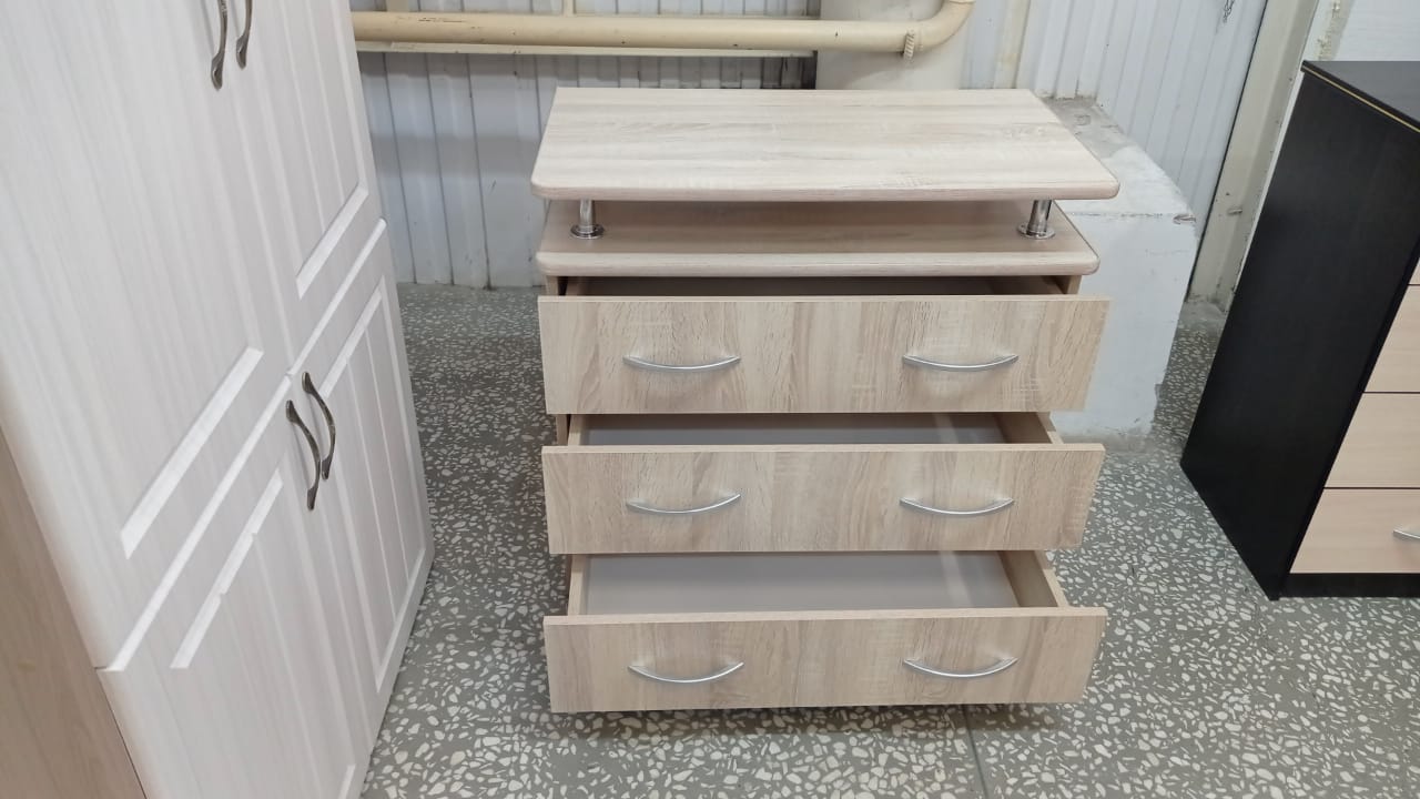 Комод с большими ящиками, за счет чего очень вместительный! Вместит в себя не только одежду, но и комплекты постельного белья. Ящики оснащены выкатными механизмами