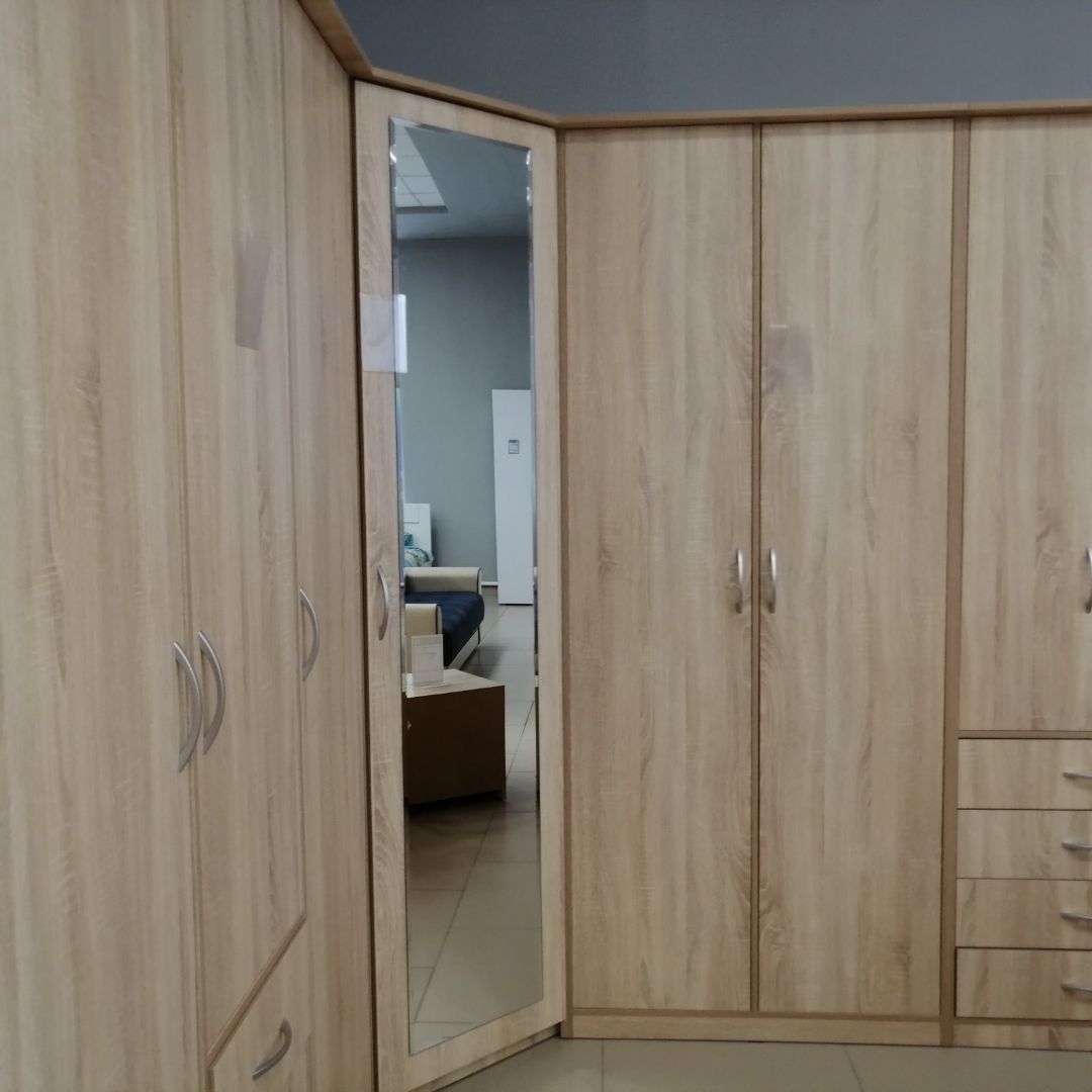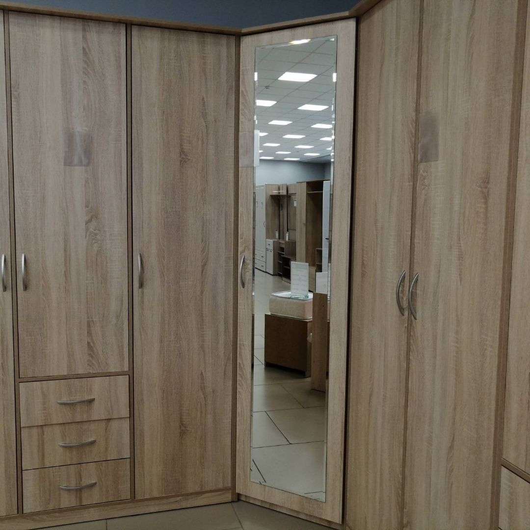 Шкаф угловой «Дуэт Люкс» с зеркалом в цвете Дуб Сонома купить в интернет магазине фабрики ЭКО