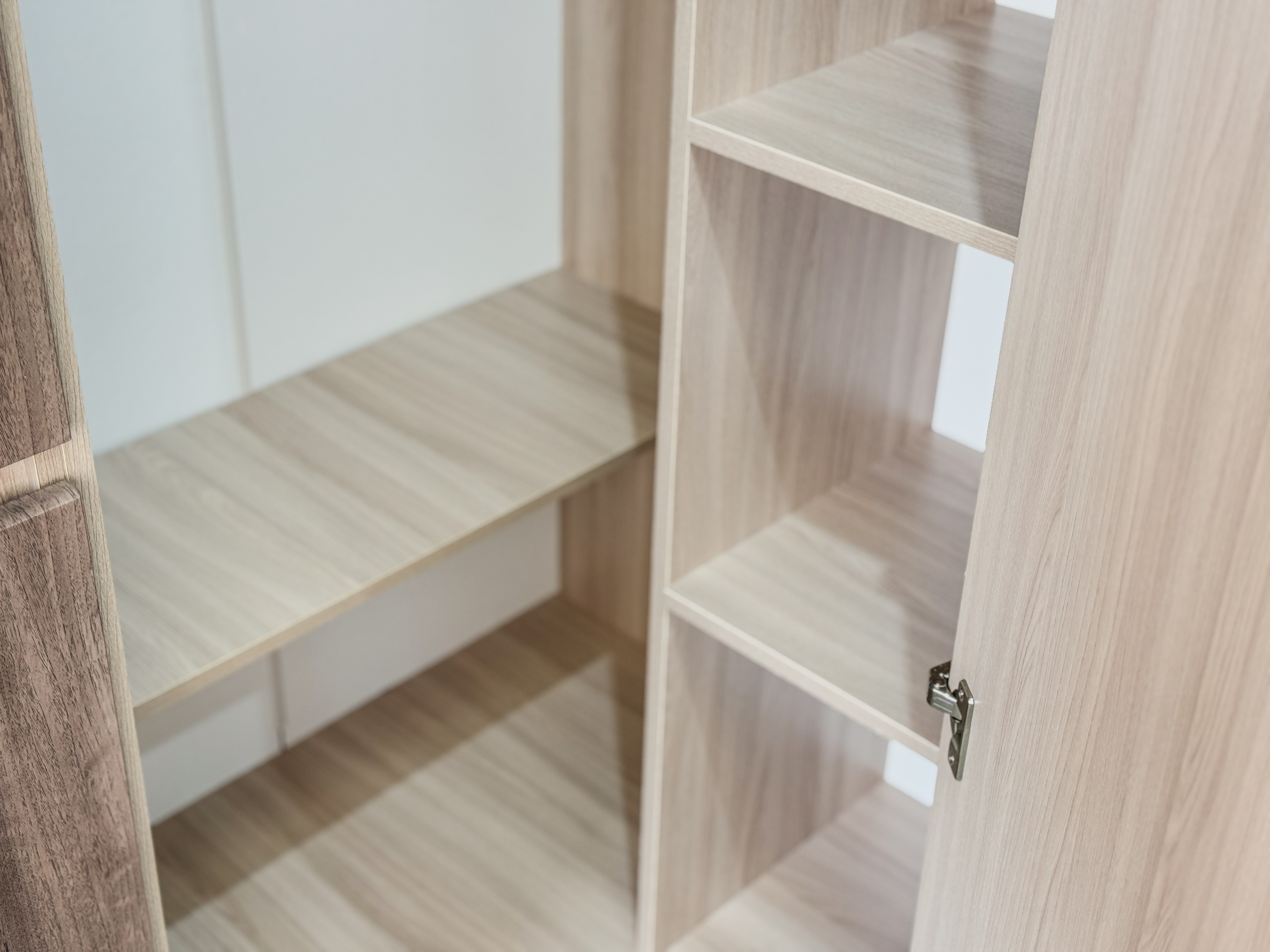 За створкой с зеркалом скрывается огромное вместительное пространство с большим количеством полочек